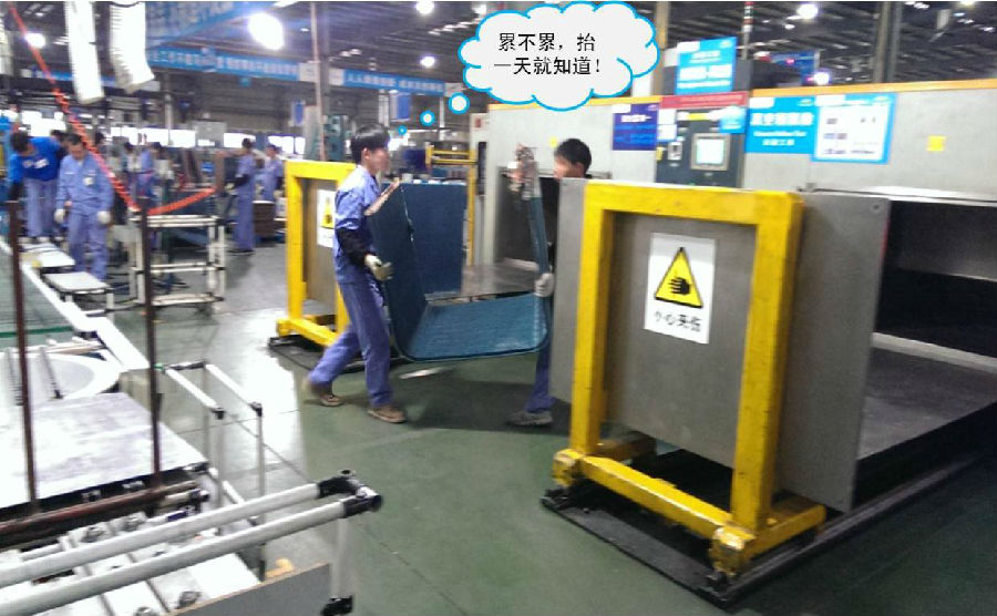 行業(yè)中,美的中央空調率先在此崗位使用機器人作業(yè)。實施后,可直接節(jié)省搬抬員工2人。品質方面:避免搬抬過程中引起的換熱器片花、倒片等不良現(xiàn)象;效率方面:現(xiàn)有生產(chǎn)節(jié)拍約75秒,而目前機器人速度僅開到40%,25秒可以搞定,為后期預留有較大效率提升空間。同時,還改善了員工作業(yè)環(huán)境,極大鼓舞了士氣。